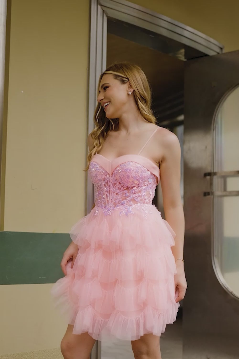 Sparkly Pink Sequins Tiered A Line Ruffled Short Homecoming Dress