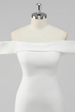 Simple Sheath Off the Shoulder Satin Short White Graduation Dress