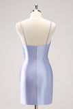 Sparkly Blue Spaghetti Straps Corset Sequin Tight Homecoming Dress with Beading