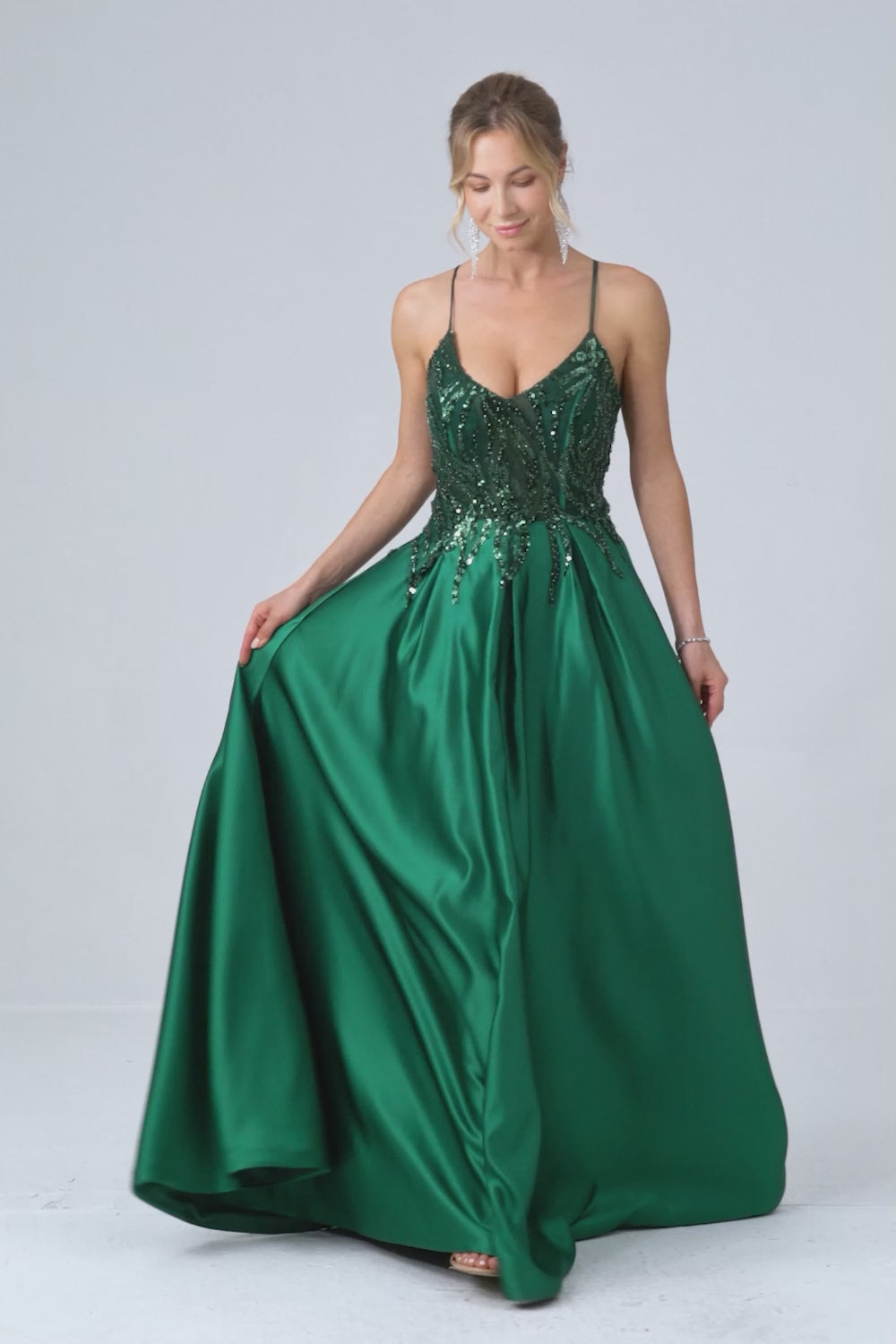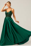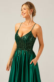 Sparkly Dark Green A-Line Spaghetti Straps Sequin Long Prom Dress