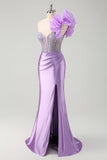 Sparkly Lilac Mermaid One Shoulder Removable Ruffles Long Prom Dress With Slit