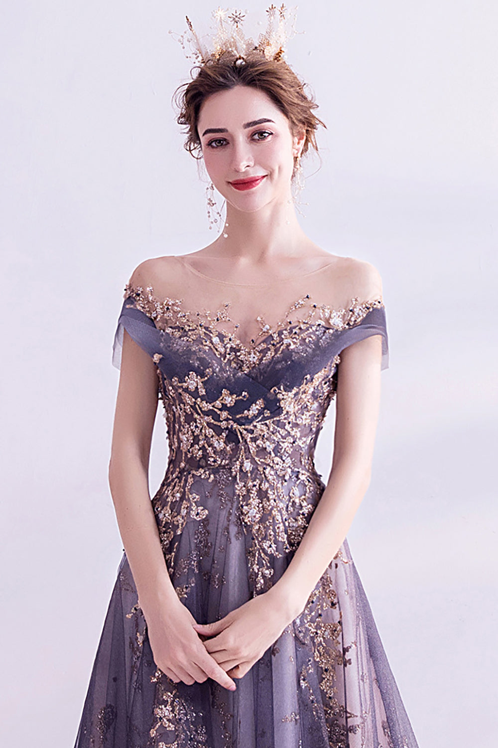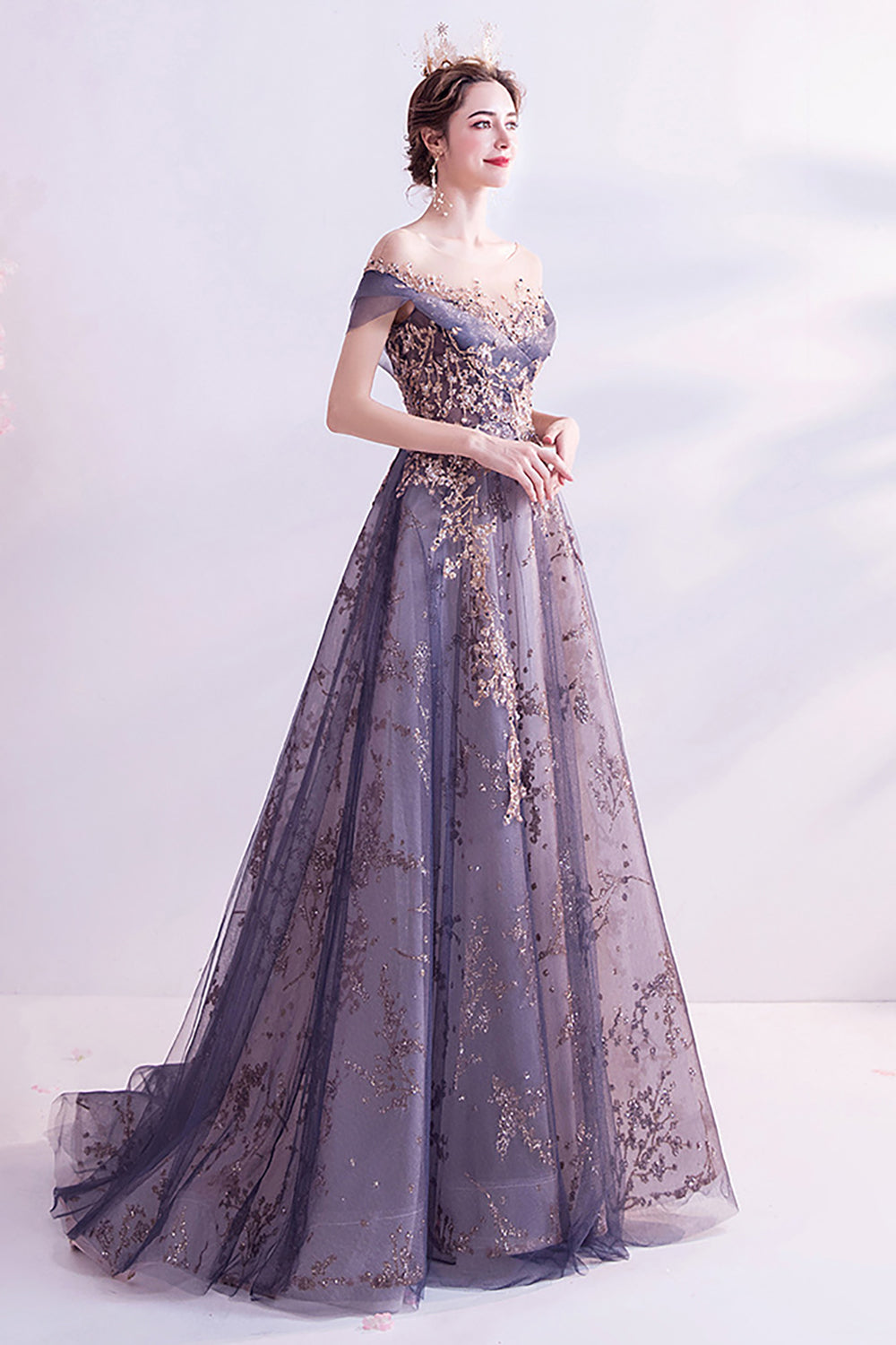 Sparkly Purple A-Line Tulle Long Prom Dress
