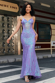 Sparkly Purple Mermaid Spaghetti Straps Prom Dress with Sequins