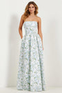 White Flower Sheath Spaghetti Straps Print Long Bridesmaid Dress with Back Slit